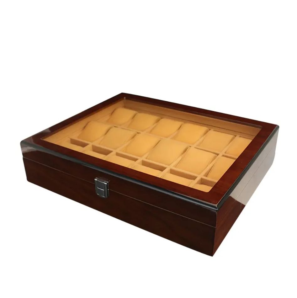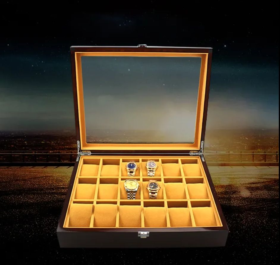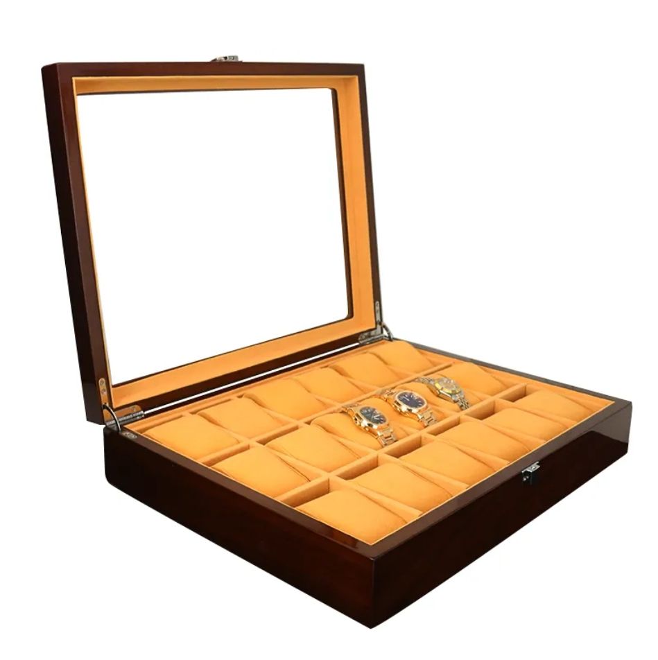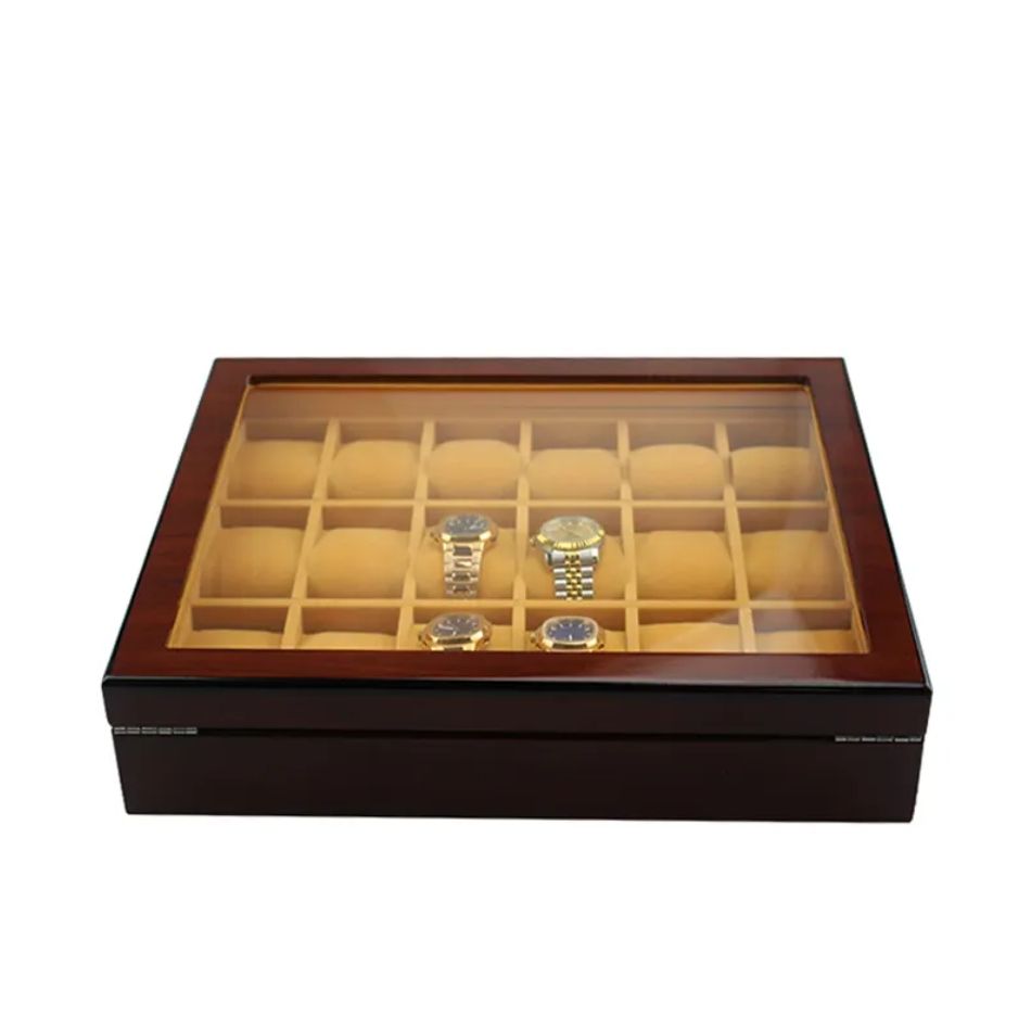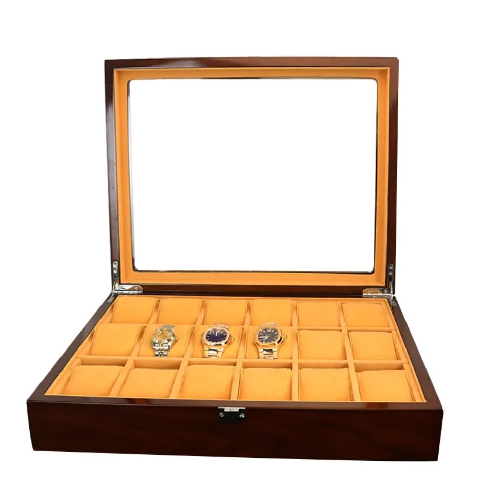 กล่องใส่นาฬิกาไม้โรสวูดสีน้ำตาลลายไม้ทรงสี่เหลี่ยมคุณภาพสูง 18 ช่อง ดีไซน์รักษ์โลก