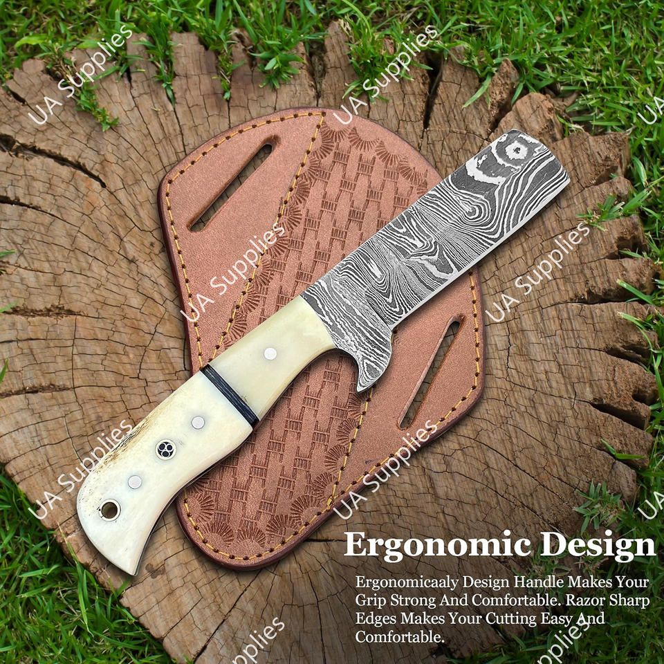มีดคุณภาพสูงเหล็กดามัสกัส ด้ามทำจากกระดูกอูฐ สำหรับล่าสัตว์ กิจกรรมกลางแจ้ง ตั้งแคมป์ พกพา EDC ใบมีดตรงคมกริบ ขายส่ง