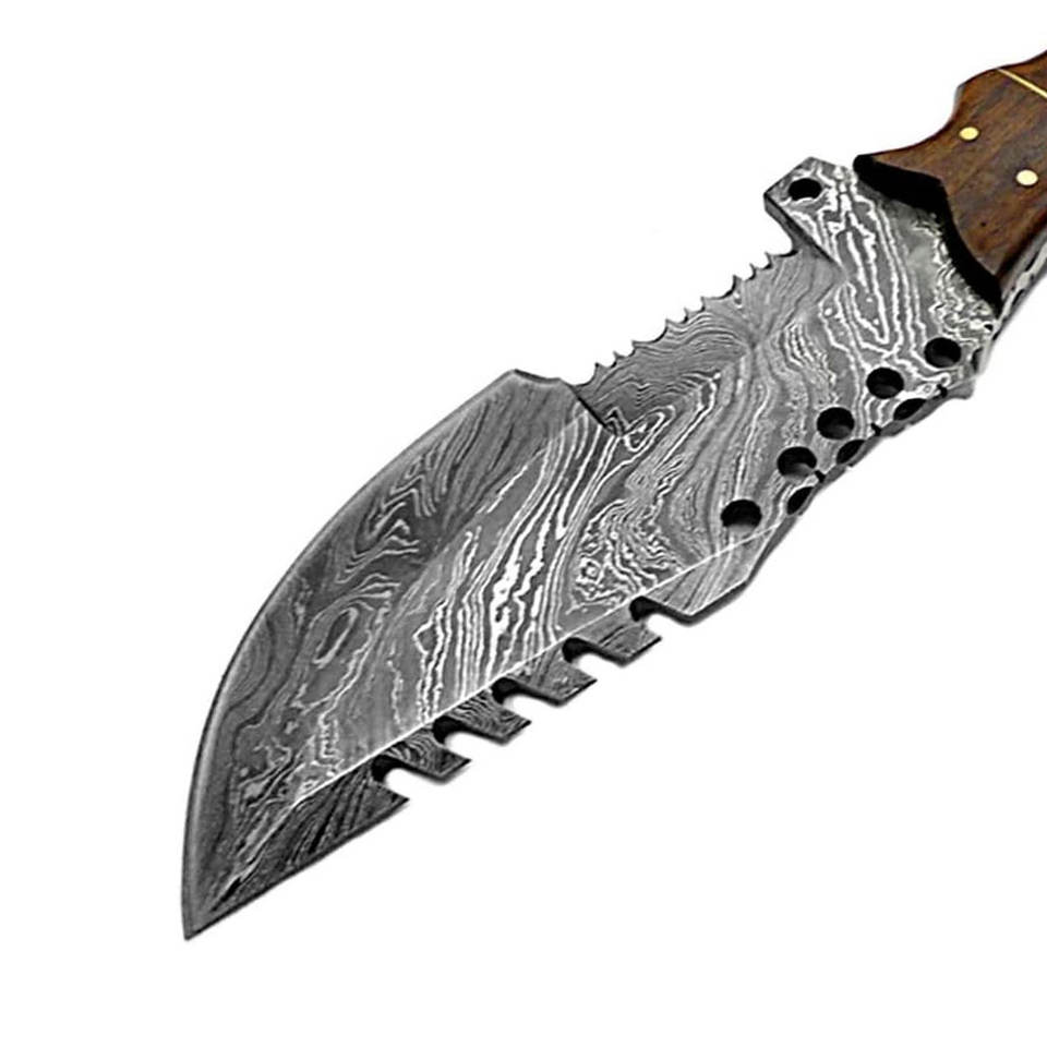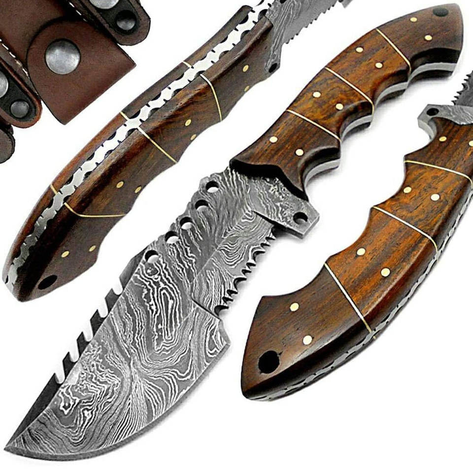 มีดดามัสกัสติดตามทำด้วยมือมีดล่าสัตว์ทำด้วยมือมีดไม้โรสวูด