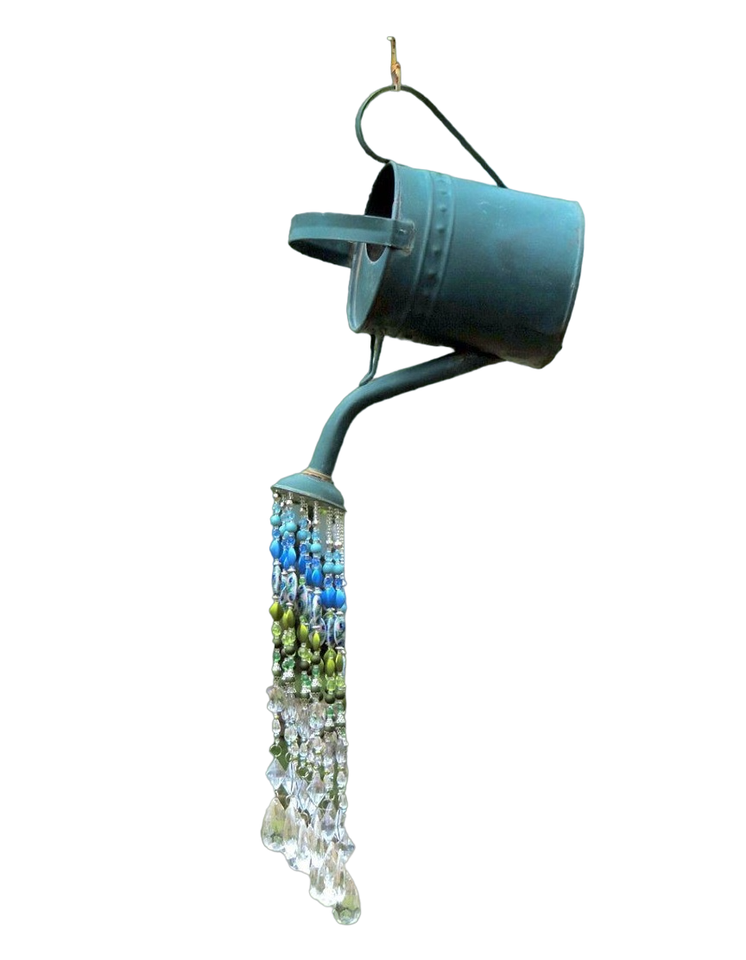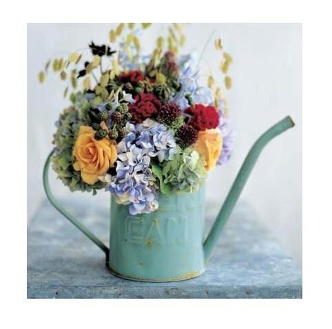 บัวรดน้ำโลหะชุบสังกะสีสีน้ำเงินเข้มพร้อมพวยและที่จับโลหะเหมาะสำหรับพืชในร่ม