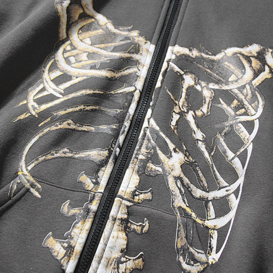 เสื้อฮู้ดซิปสีเทาเข้มคุณภาพสูง ลายการ์ตูนสำหรับฤดูหนาว รุ่น High Street Series สกรีนโลโก้ได้ ทรงโอเวอร์ไซส์ สำหรับผู้ชาย ผลิตจากผ้าฝ้ายออร์แกนิค 100%