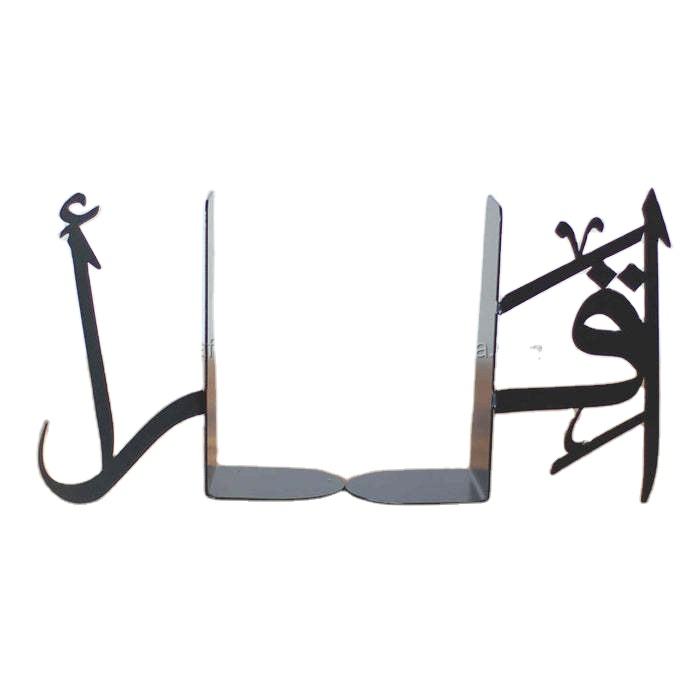 คุณภาพสูงตกแต่งอิสลาม Wall Art อัลลอฮ์มุฮัมมัดหนังสือสิ้นสุด Home Office ชั้นวางตัวอักษรอิสลาม Bookends โลหะ