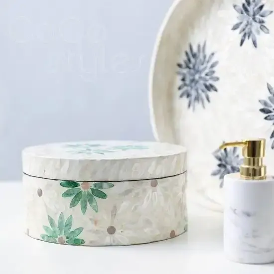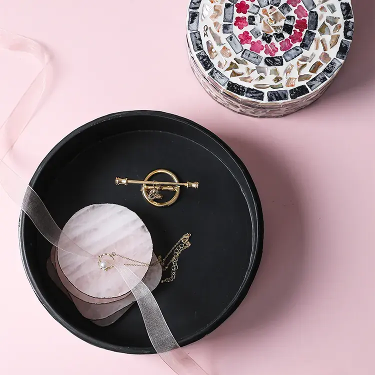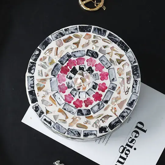 กล่องทรงกลมสำหรับตกแต่งกล่องใส่ของแบบฝังมุกกล่องออกแบบได้ตามต้องการสำหรับจัดแสดงช็อคโกแลตแฮนด์เมดในเวียดนาม