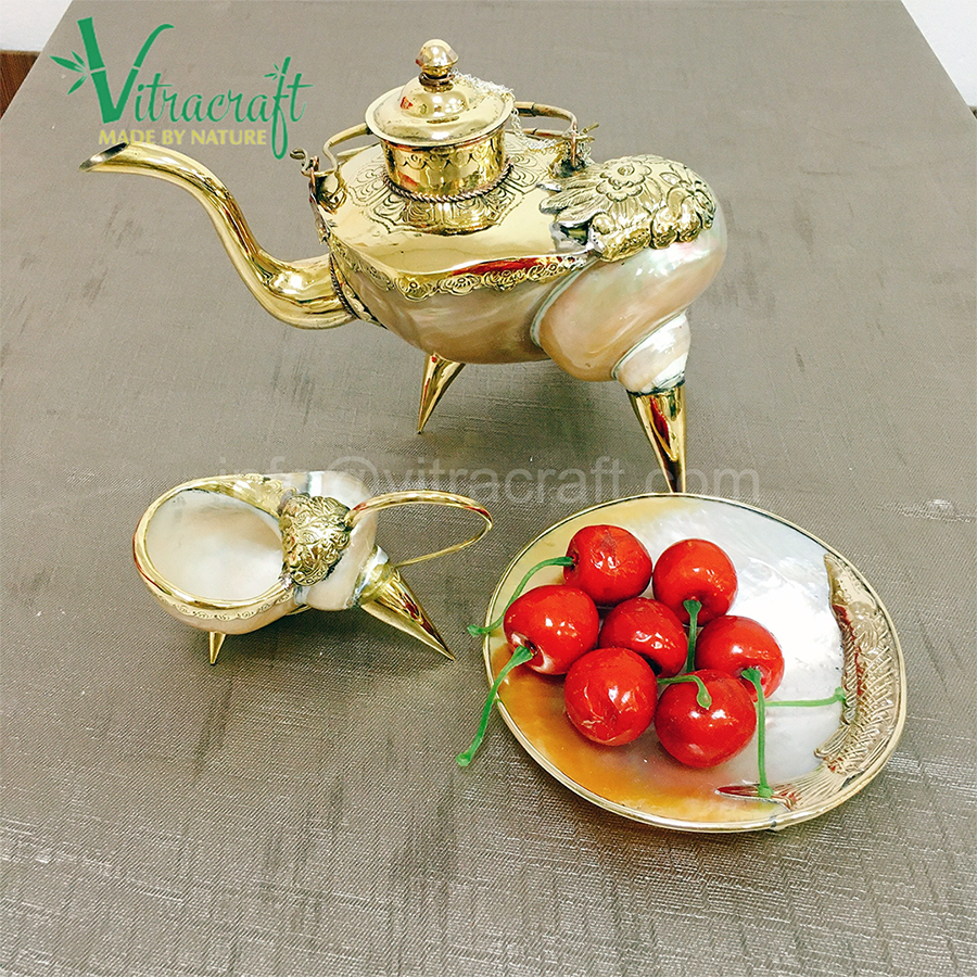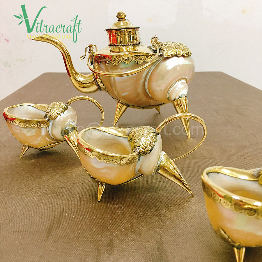 ชื่อผลิตภัณฑ์:ชุดกาน้ำชาทำจากหอยสังข์ระดับพรีเมี่ยม