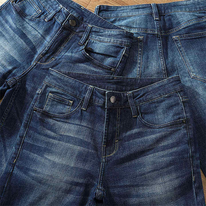 กางเกงยีนส์ผู้ชายมือสองคุณภาพสูง สีน้ำเงินเข้ม สีน้ำเงินอินดิโก้ สีฟ้าอ่อน ทรงตรง ราคาถูก มีสินค้าในสต็อก