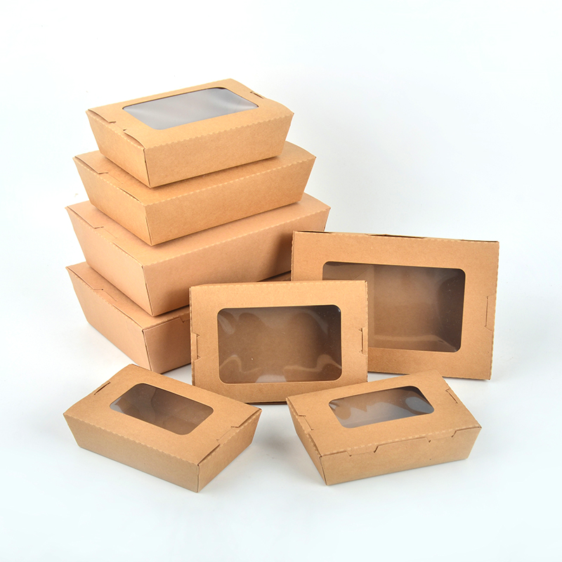 กล่องอาหารกลางวันกระดาษคราฟท์ย่อยสลายได้พร้อมเคลือบ UV กันน้ำมันกันน้ำมีคุณสมบัติการจัดการพิมพ์หน้าต่าง