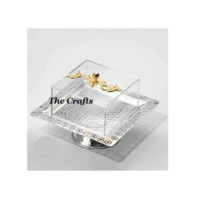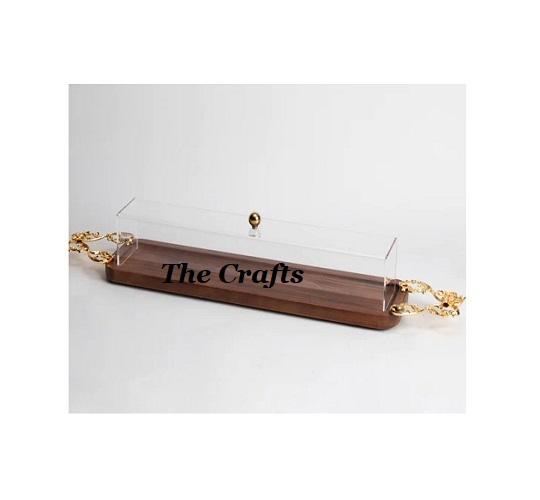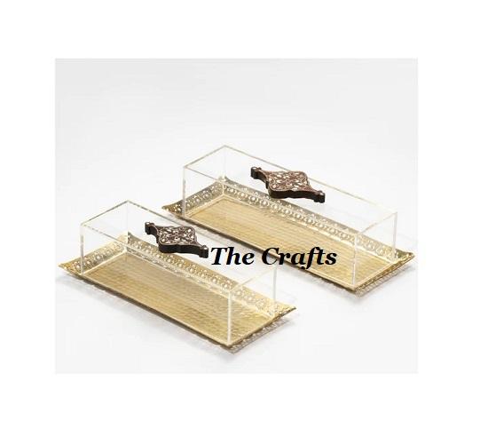 ชุดถาดสแตนเลสคุณภาพสูงแบบดีลักซ์ 2 ใบ พร้อมฝาครอบอะคริลิกและมือจับไม้ สำหรับร้านอาหาร ถาดใส่ของหวาน