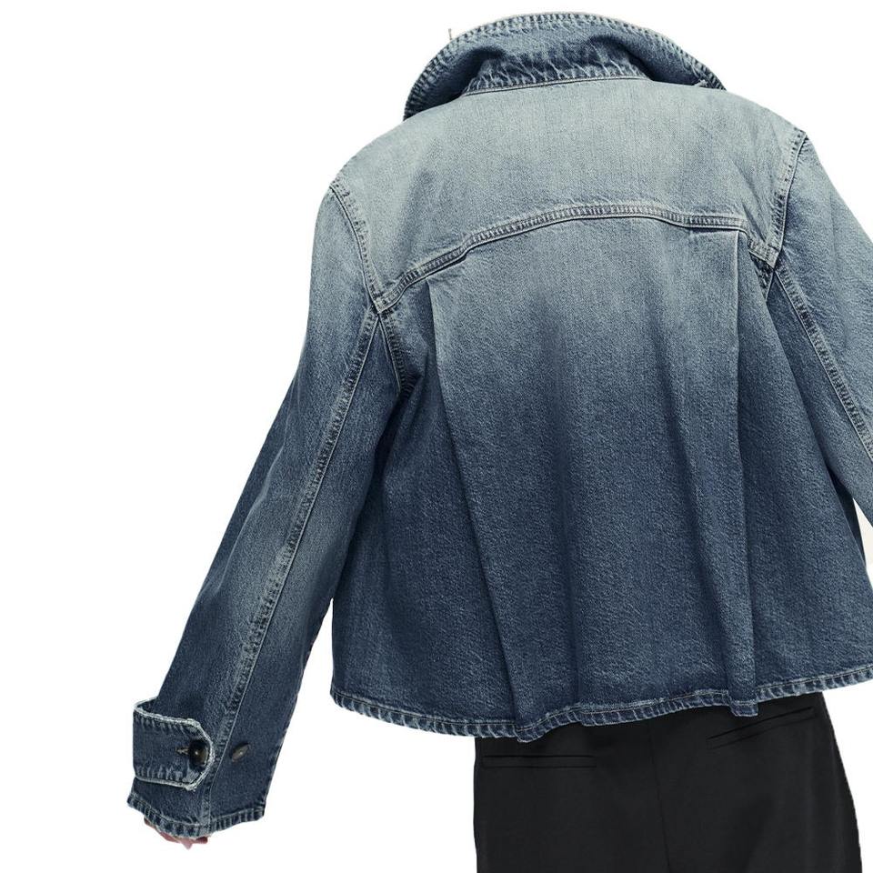 แจ็คเก็ตยีนส์คุณภาพสูง สีพื้น สไตล์สั่งทำพิเศษ ปิดด้านหน้าแบบติดกระดุมซ่อน กระเป๋าข้าง สไตล์ลำลอง