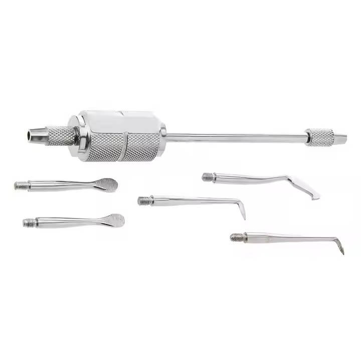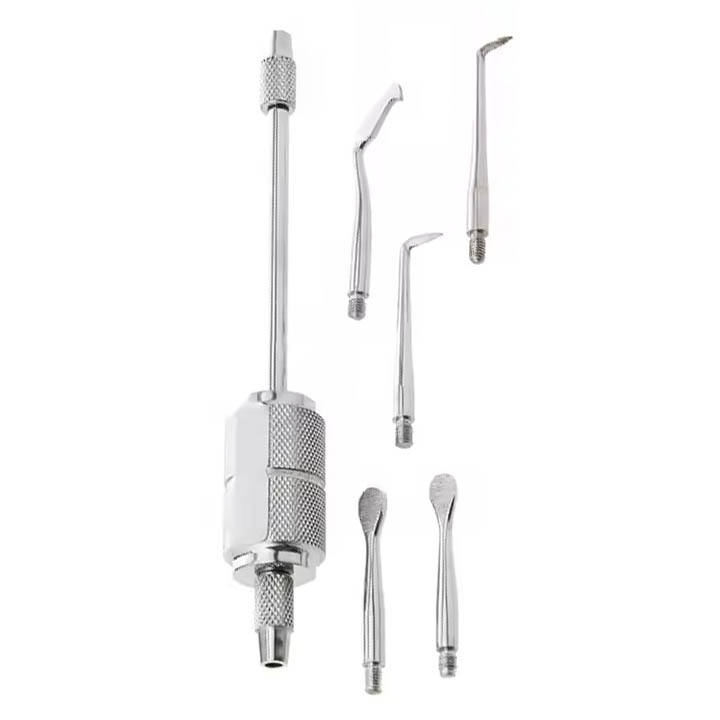 ปืนถอดมงกุฎฟันแบบแมนนวลพร้อมกุญแจ5ชิ้นเครื่องมือผ่าตัดคุณภาพสูงสำหรับขั้นตอนทางทันตกรรม
