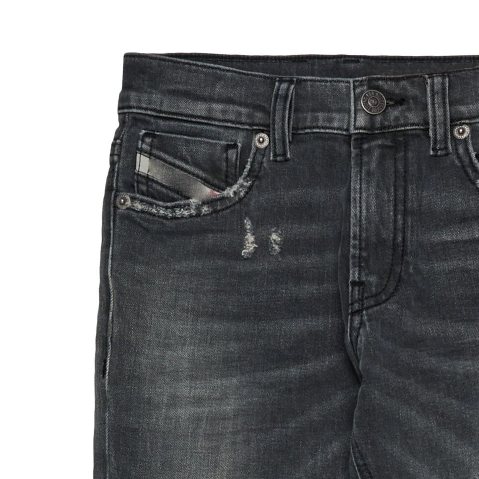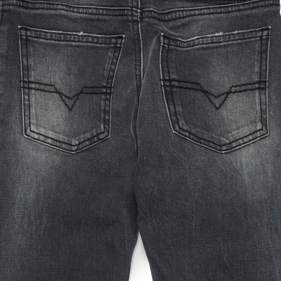 กางเกงเด็กผู้ชายดีไซน์คุณภาพสูง สีดำเฉดเข้ม ทรงสลิม ซิปและกระดุมปิด ผลิตจากผ้ายีนส์ยืด ดีไซน์สวมใส่สบาย รุ่นปี 2026