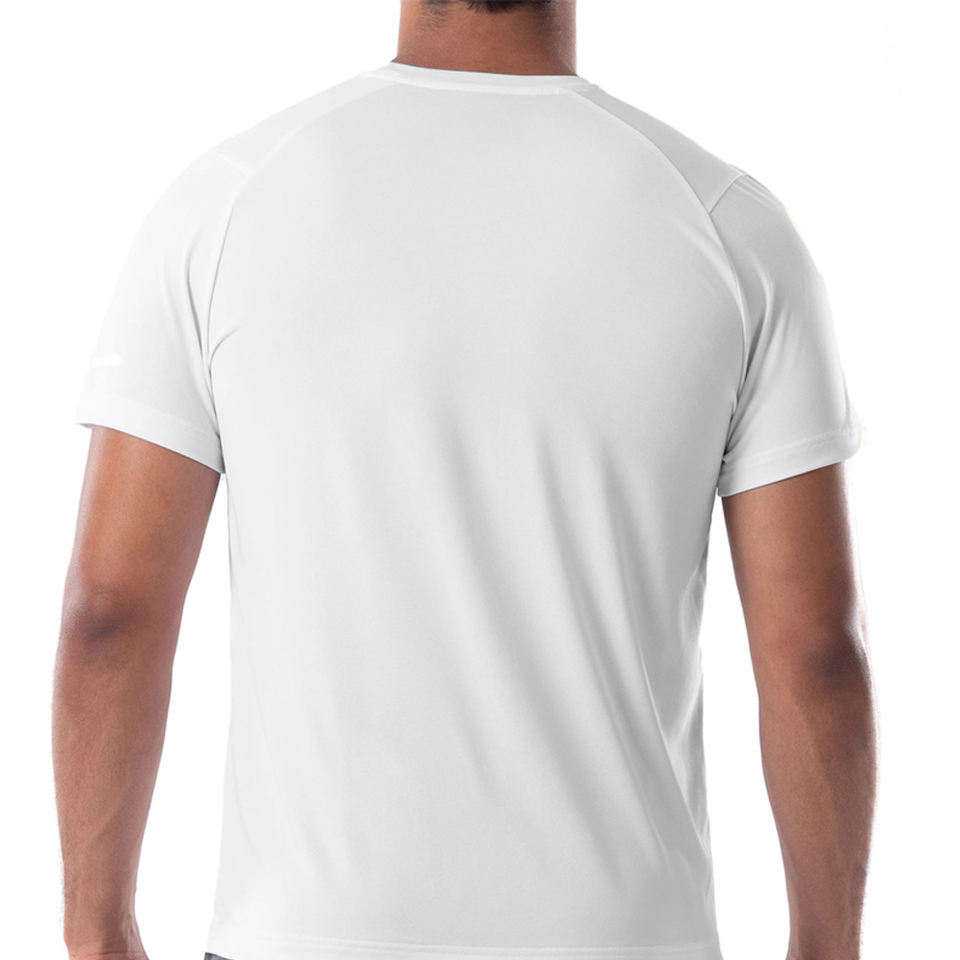 เสื้อยืดคอกลมลำลองสำหรับผู้ชายสีทึบแขนสั้นผ้าแคนวาสป้องกันการพอง