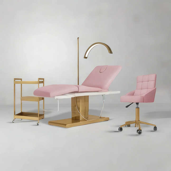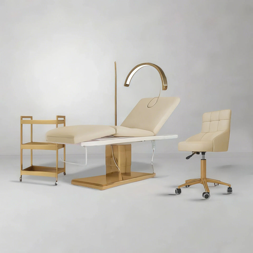 เก้าอี้เตียงโฟมเมมโมรีโฟมสีเบจสำหรับร้านเสริมสวย