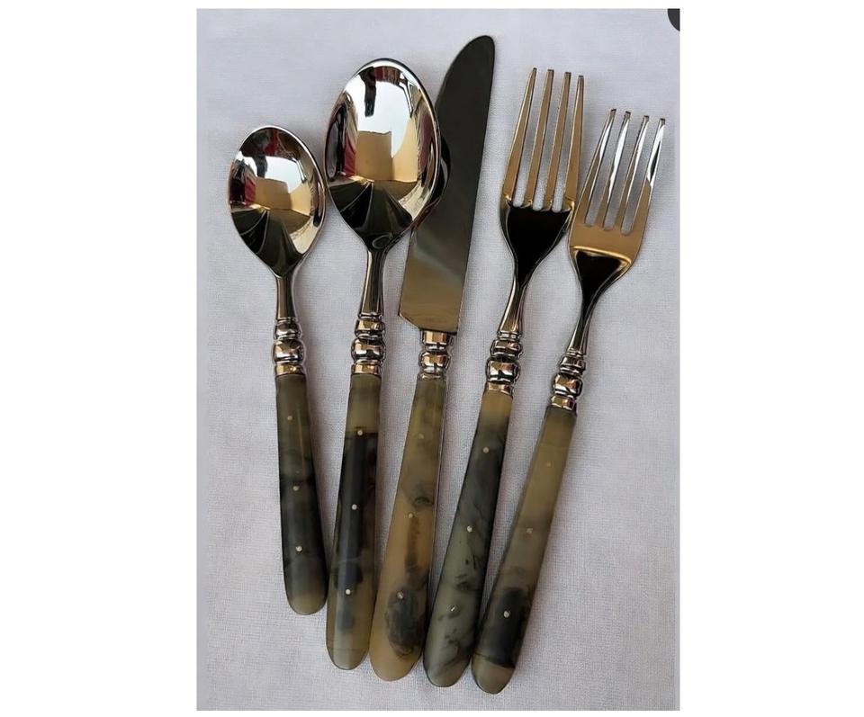ชุดช้อนส้อมดีไซน์คุณภาพสูง สแตนเลส ด้ามเรซิ่น ชุบทอง 5 ชิ้น ราคาขายถูก