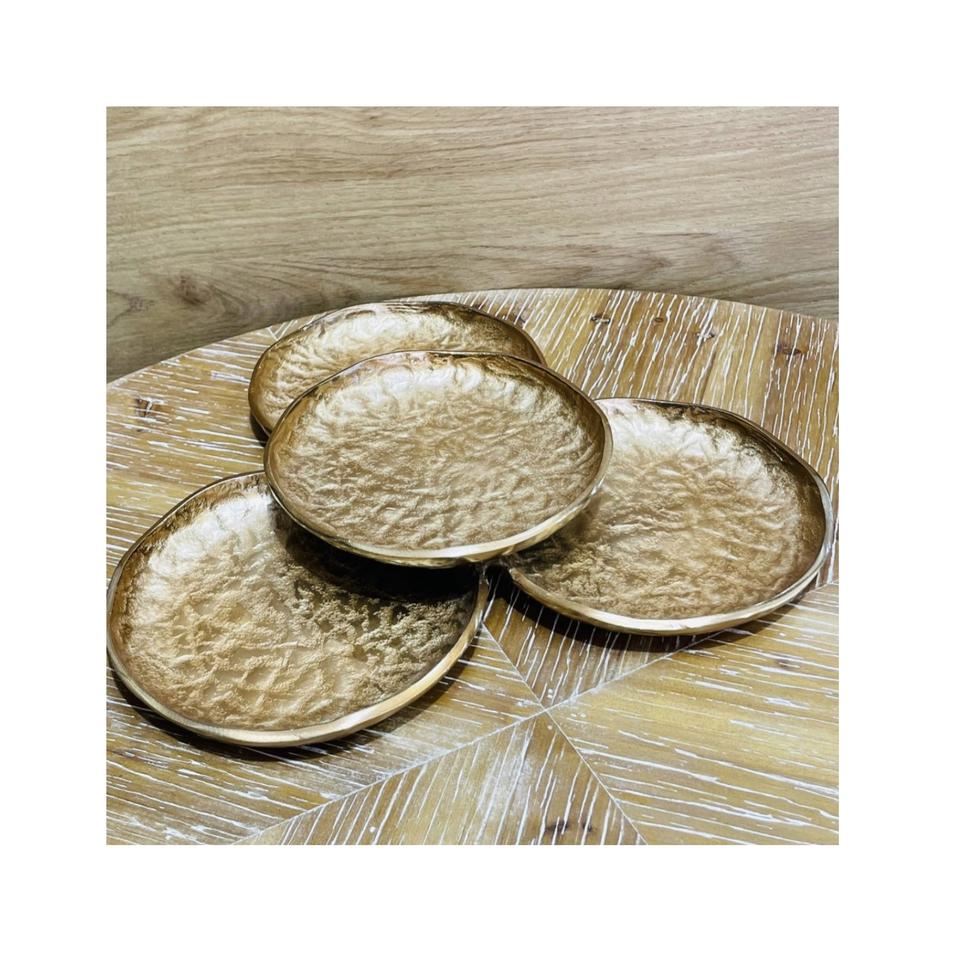 จานโลหะผลไม้ทรงกลมทำจากอลูมิเนียมสำหรับตกแต่งขนมเสิร์ฟจานเค้กทันสมัยเคลือบสีฟ้า