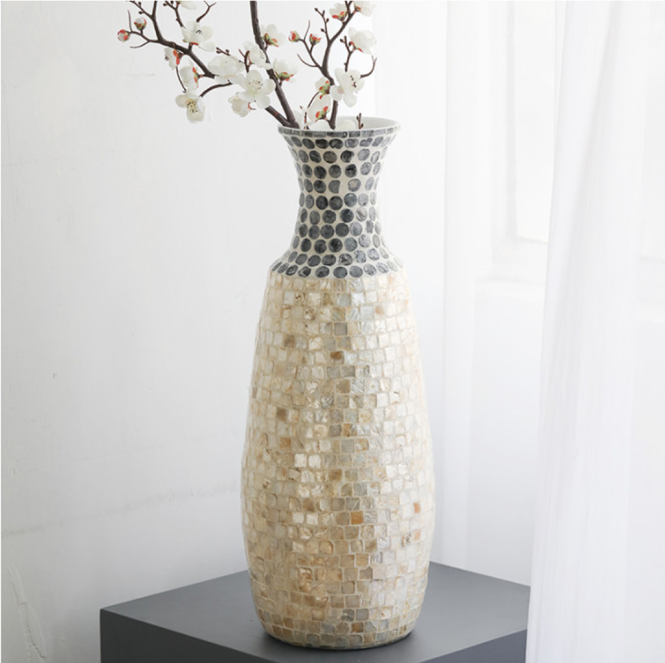 ที่มีคุณภาพสูงแจกันดอกไม้โมเสกแม่ของมุกสไตล์หรูหราตกแต่งโต๊ะรับประทานอาหารค่ำห้องนั่งเล่น