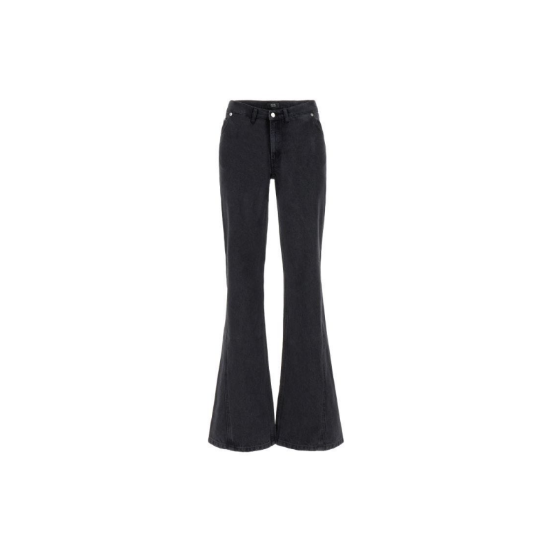 กางเกงยีนส์ผ้าเดนิม APC ผ้ายีนส์สีดำขากระบอกมีซิปปิดและกระดุมกางเกงยีนส์ทรงบานสำหรับ100%