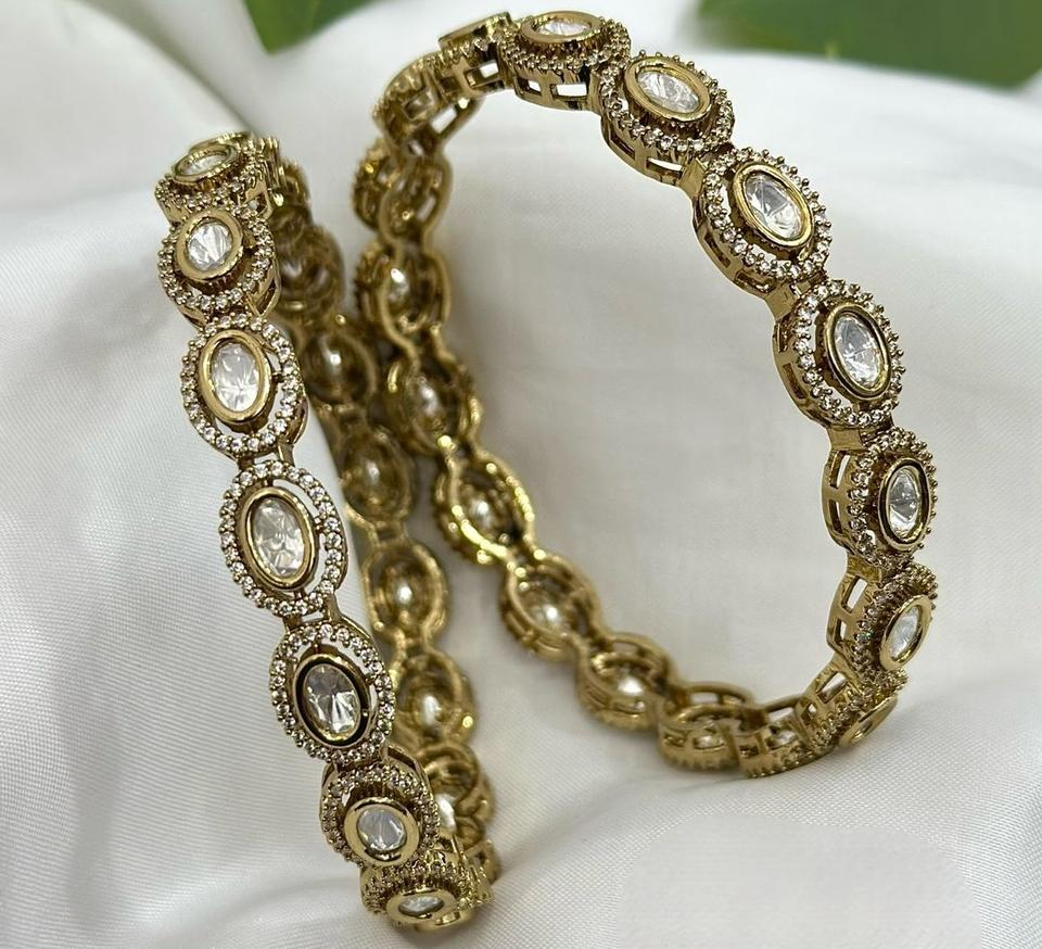 High Quality Designer Gold Plated Traditional Wear Openable Bangles Two Pair Of Bangles Set for Wedding Collection For Women