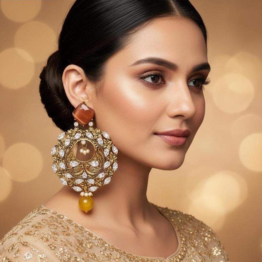 ต่างหูทองชุบดีไซน์เนอร์คุณภาพสูง สไตล์ดั้งเดิมประดับเพชรคุณภาพสูง สำหรับงานแต่งงานและงานปาร์ตี้ คอลเลคชั่นสำหรับผู้หญิงและเด็กผู้หญิง