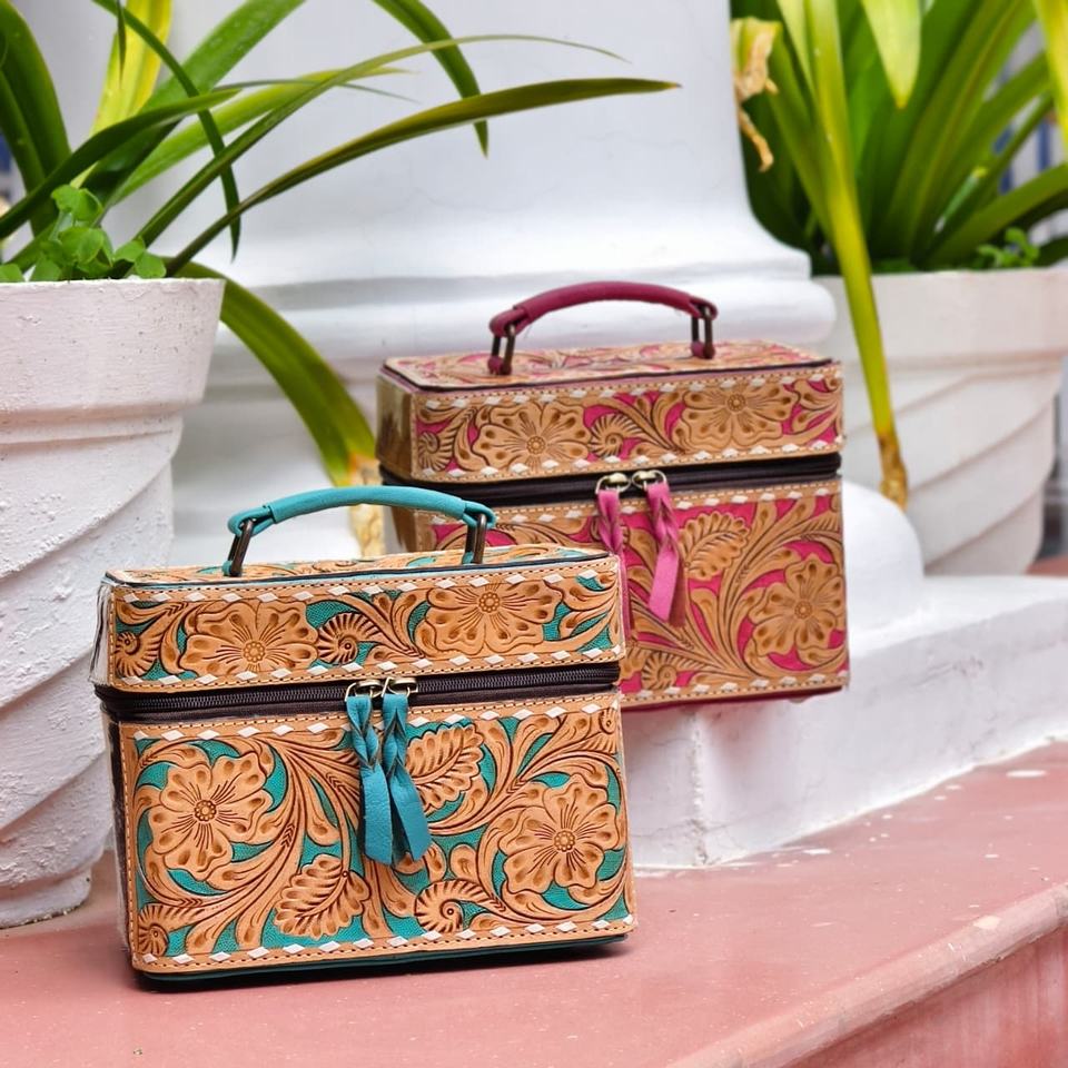 กระเป๋าเครื่องสำอางหนังแท้คุณภาพสูง ดีไซน์เนอร์ทำมือ รูปทรงสี่เหลี่ยม กล่องใส่เครื่องประดับผู้หญิง สไตล์ตะวันตก กล่องจัดระเบียบสำหรับเดินทาง