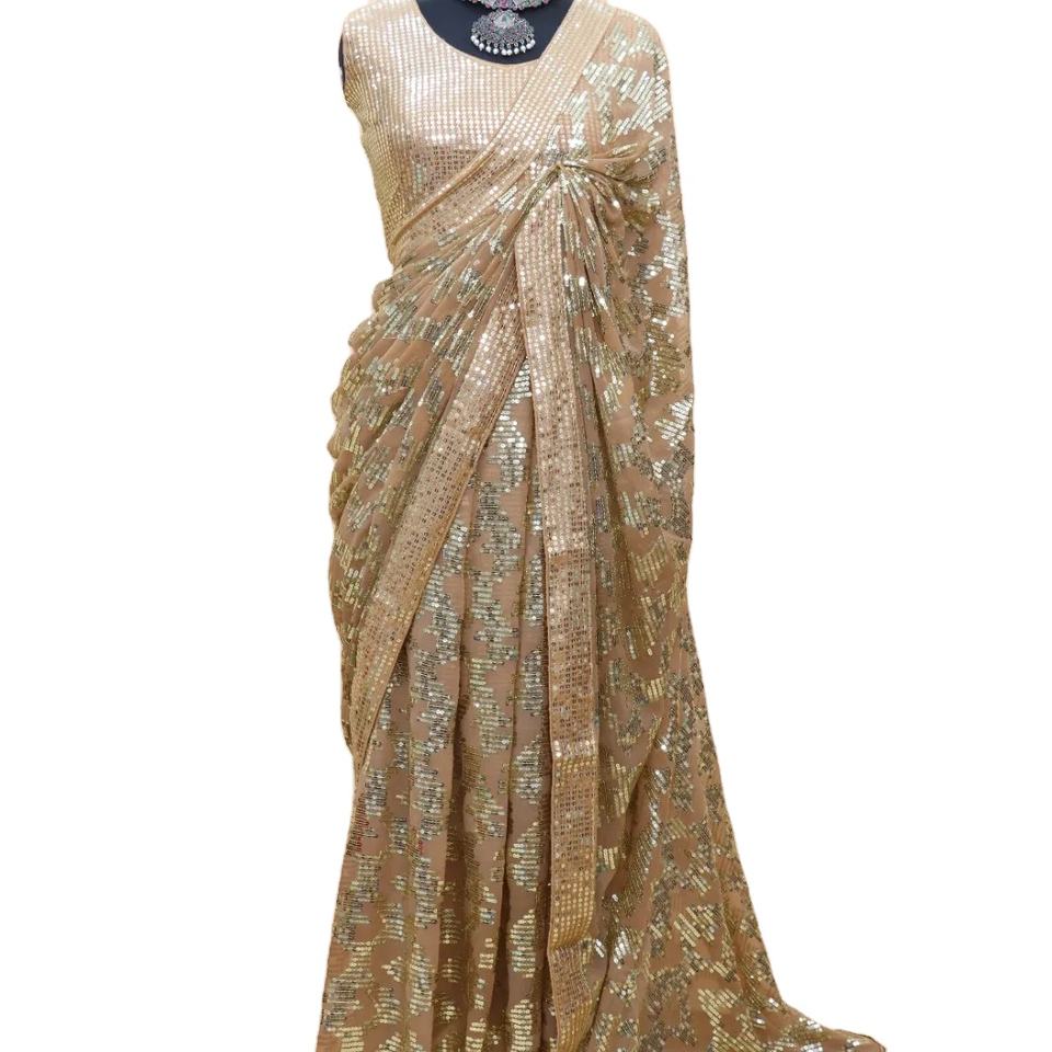 ผ้าซารีผ้าจอร์เจตต์เทียมคุณภาพสูง งานปักลายดีไซเนอร์ คอลเลคชั่นล่าสุดจาก FABZONE สำหรับผู้หญิงอินเดียและปากีสถาน