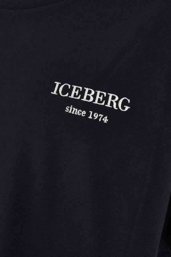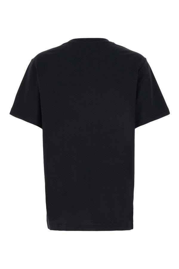 เสื้อยืดผ้าฝ้ายสีดำภูเขาน้ำแข็งดีไซน์เนอร์ตัดโลโก้สีขาวขนาดเล็กปักที่ด้านหน้า