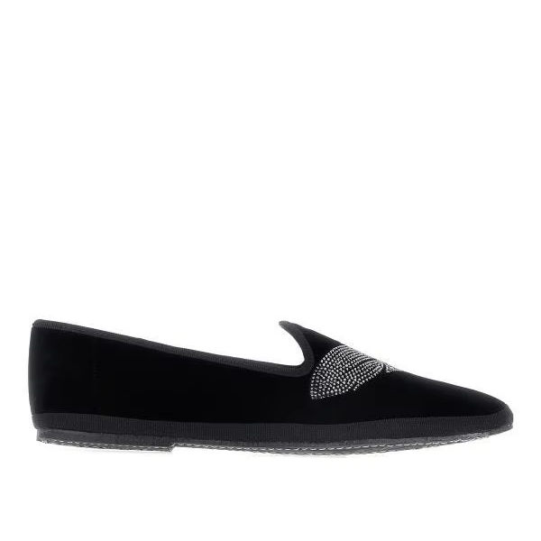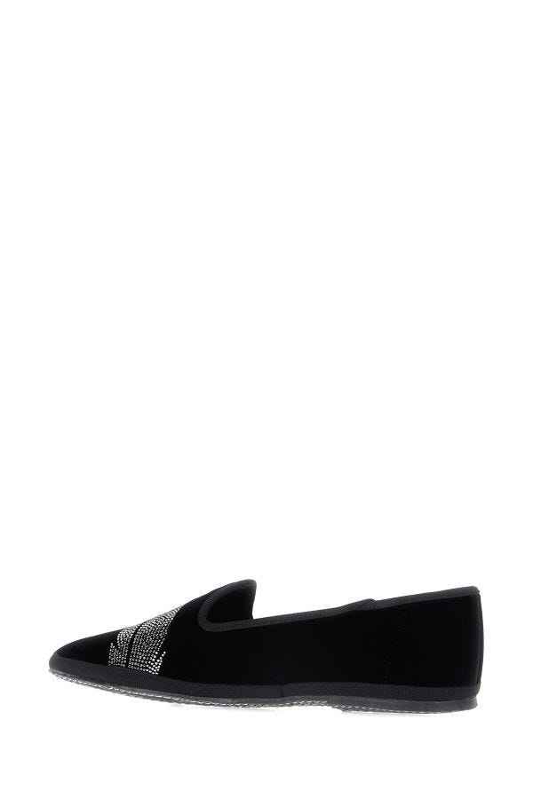 รองเท้าบัลเล่ต์ผ้ากำมะหยี่สีดำยี่ห้อ lemargot sophie โลโก้สีเงินนูนบนพื้นรองเท้า