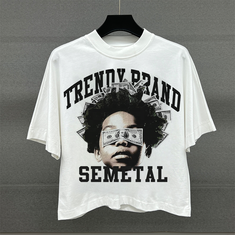 เสื้อยืดสตรีทแวร์ดีไซน์เนอร์คุณภาพสูง พิมพ์โลโก้ตามสั่ง ทรงโอเวอร์ไซส์ ผ้าคอตตอนหนานุ่ม ทรงครอป บ็อกซี่