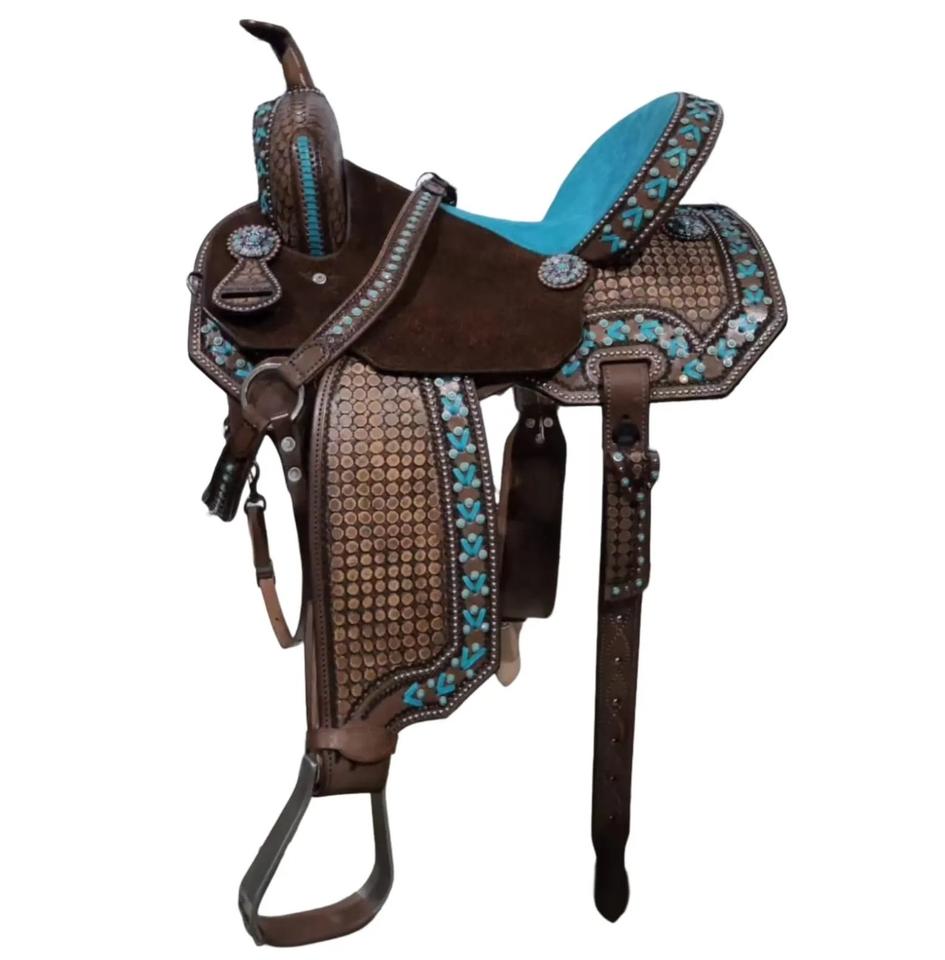 ชุดหมุดที่นั่งม้าแบบอานสีเทอร์ควอยส์สีฟ้าคราม DD ดีไซน์เนอร์แบบตะวันตก