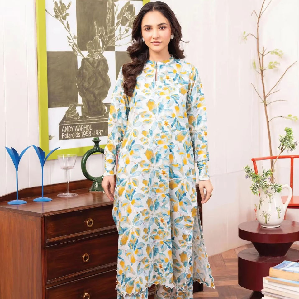 ชุดสูทผ้าลินินพิมพ์ลายดิจิทัลสำหรับสตรีชุดปาร์ตี้สไตล์ปากีสถานสำหรับฤดูหนาว