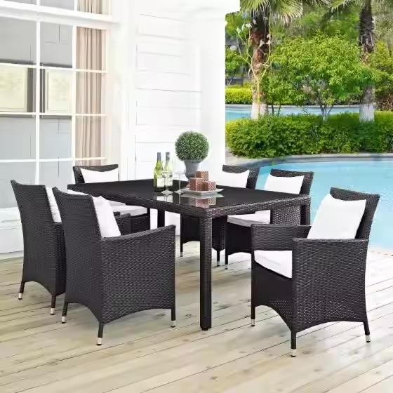 คำอธิบาย:ชุดรับประทานอาหารกลางแจ้งพร้อมโต๊ะ1ตัวและเก้าอี้6ตัว
