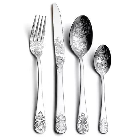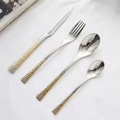 ชุดช้อนส้อมมีดสแตนเลสคุณภาพสูง ชุดอุปกรณ์รับประทานอาหารโลหะ ดีไซน์ทันสมัย