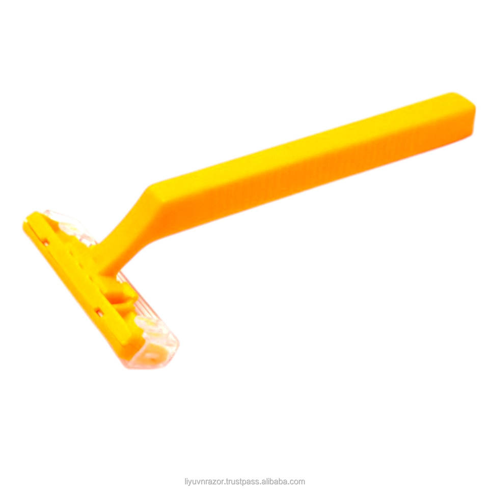 มีดโกนพลาสติกแบบใช้แล้วทิ้งสำหรับผู้ชายโกนหนวดแฝดแบบใบมีด2ใบ