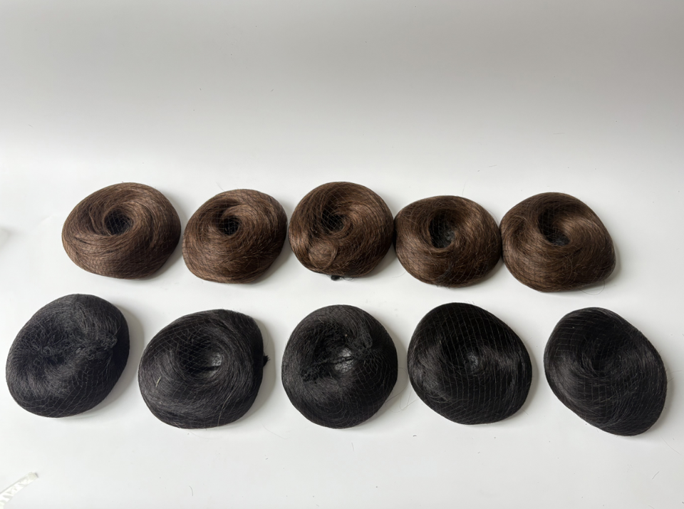 มวยผมแบบสั้นผมต่อแบบหางม้าอุปกรณ์เสริมผมมนุษย์แบบพู่