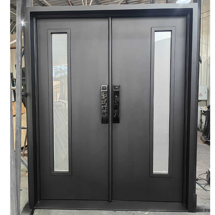 ประตูเหล็กคุณภาพสูงแบบสองบาน ประตูทางเข้าบ้านหรูหรา กันเสียง ทาสี ประตูทางเข้าด้านหน้าแบบกันเสียง พร้อมแผงสองบาน