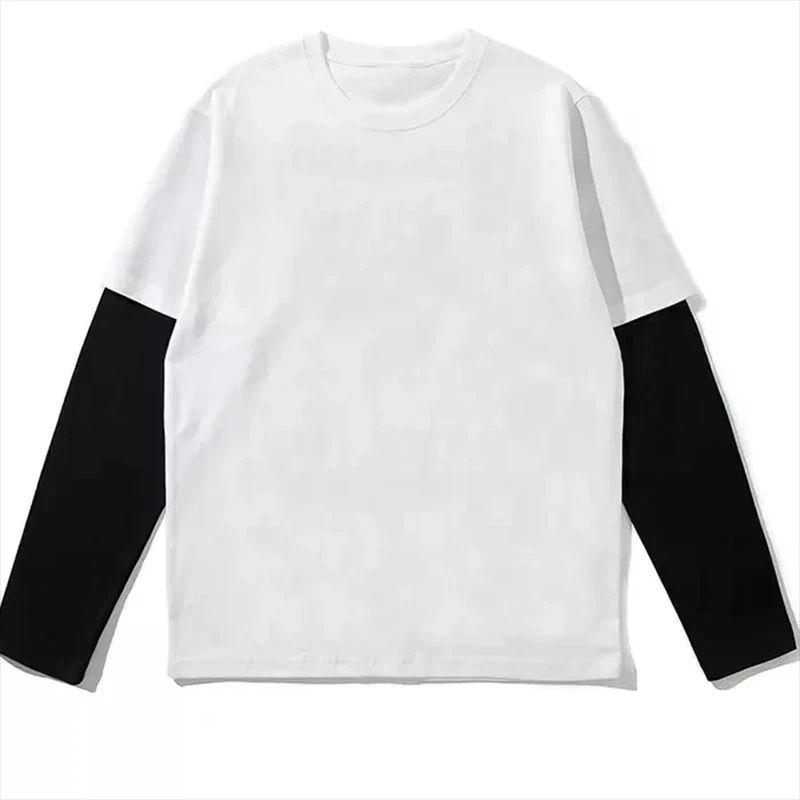 เสื้อยืดแขนยาวสองชั้นสำหรับผู้ชายเสื้อลำลองโอเวอร์ไซส์ผ้าคอตตอนโอเวอร์ไซส์