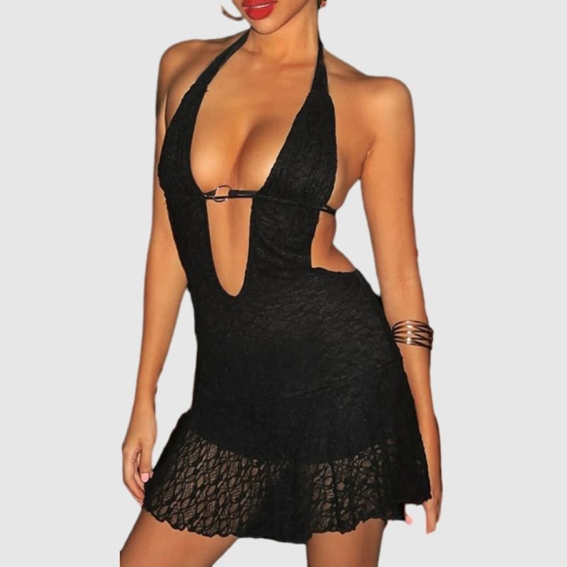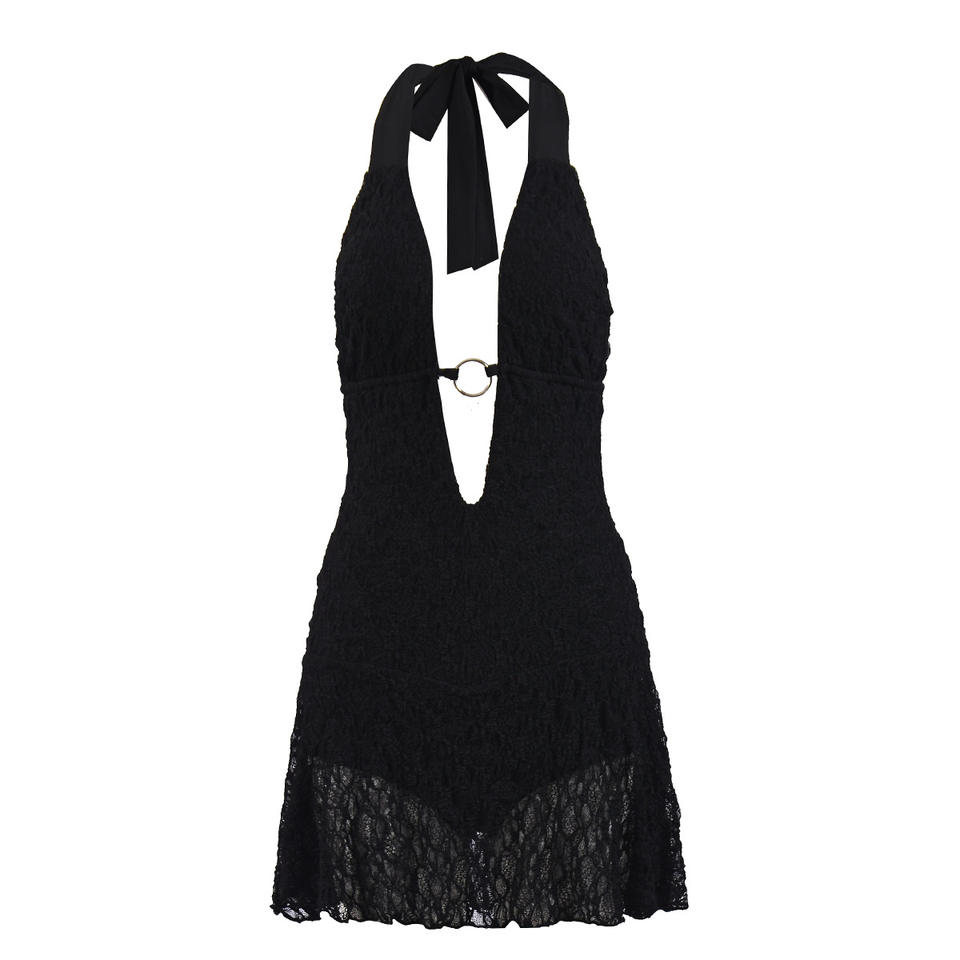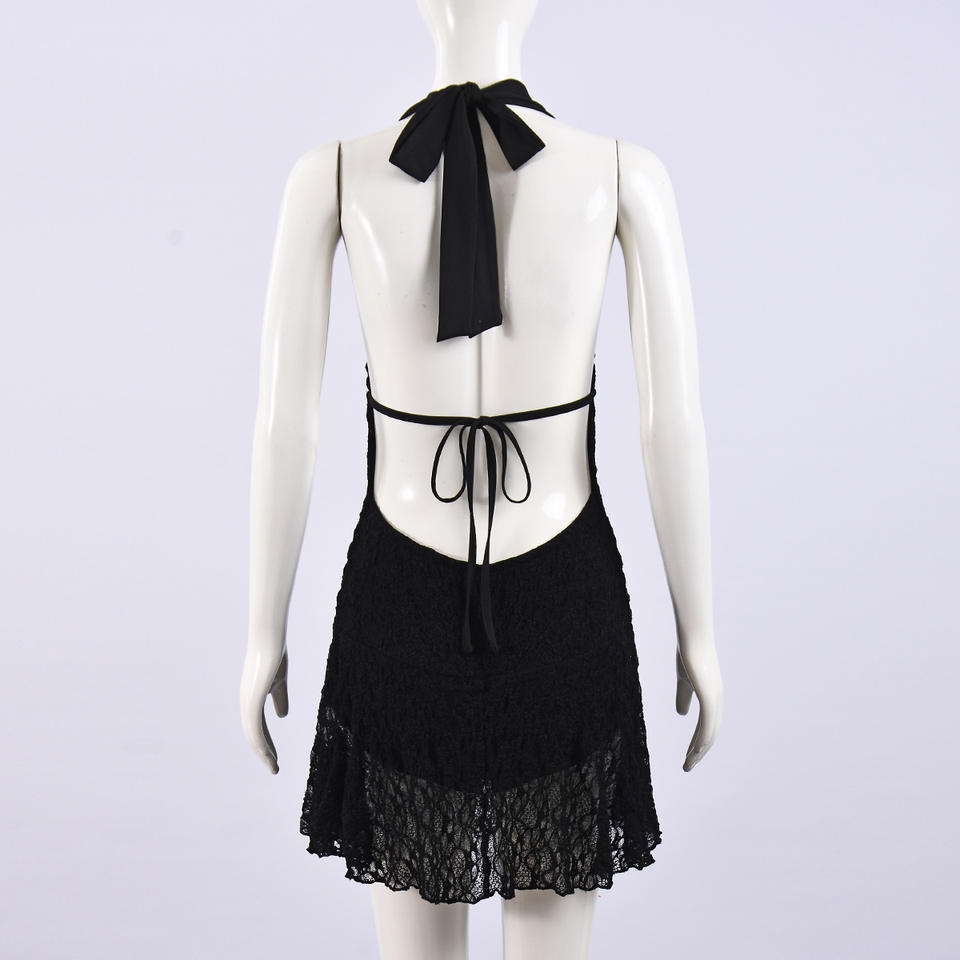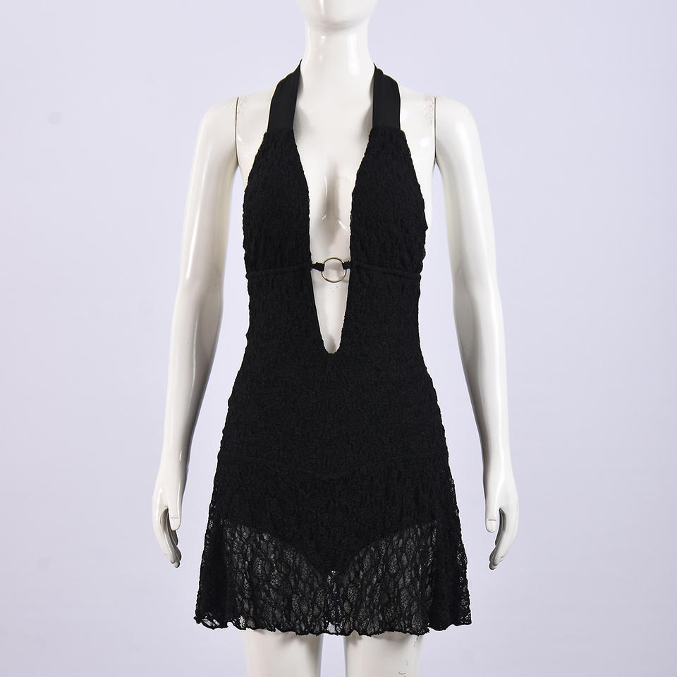 เดรสเซ็กซี่ผ้าซีทรูสองชั้นคุณภาพสูง สายผูกเอว ดีไซน์เว้าโชว์ สำหรับผู้หญิง แฟชั่น