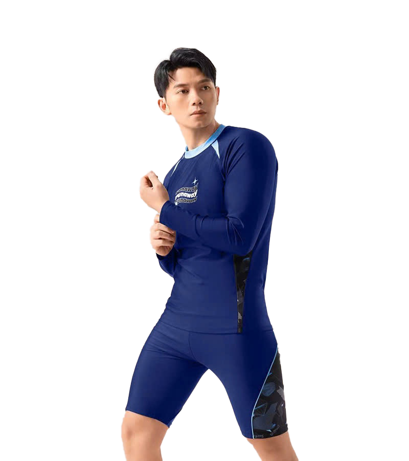 ชุดว่ายน้ำแขนยาวสองชั้นสำหรับผู้ชายผ้าไนลอน-ผ้าสแปนเด็กซ์ผสมน้ำพิมพ์ลายกันน้ำดีไซน์สหรัฐอเมริกา
