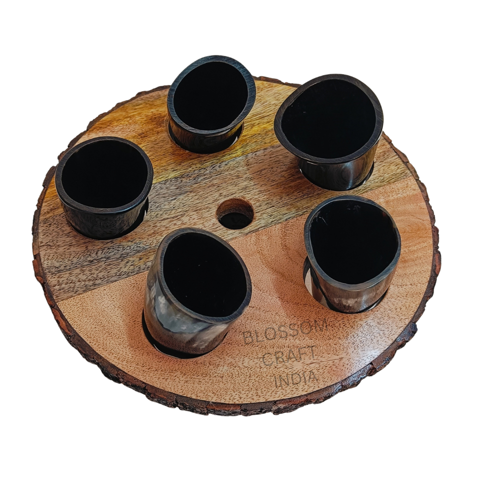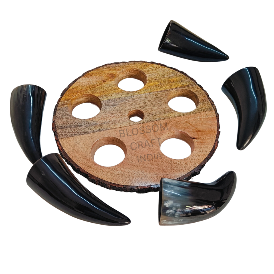 แก้วน้ำเขาสัตว์คุณภาพสูงพร้อมฐานไม้ ทำด้วยมือจากเขาวัว ควาย บัฟฟาโล สไตล์ไวกิ้ง นอร์ดิก ของสะสมสำหรับนักสะสม