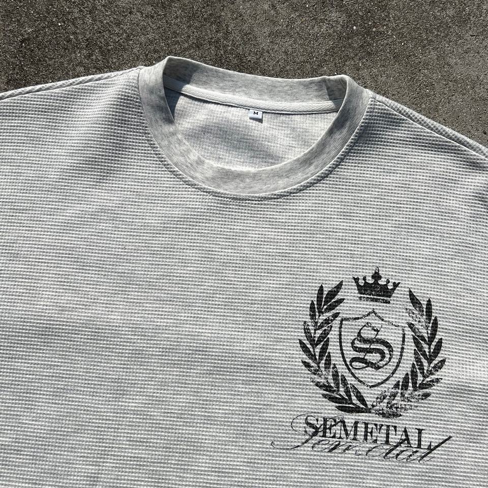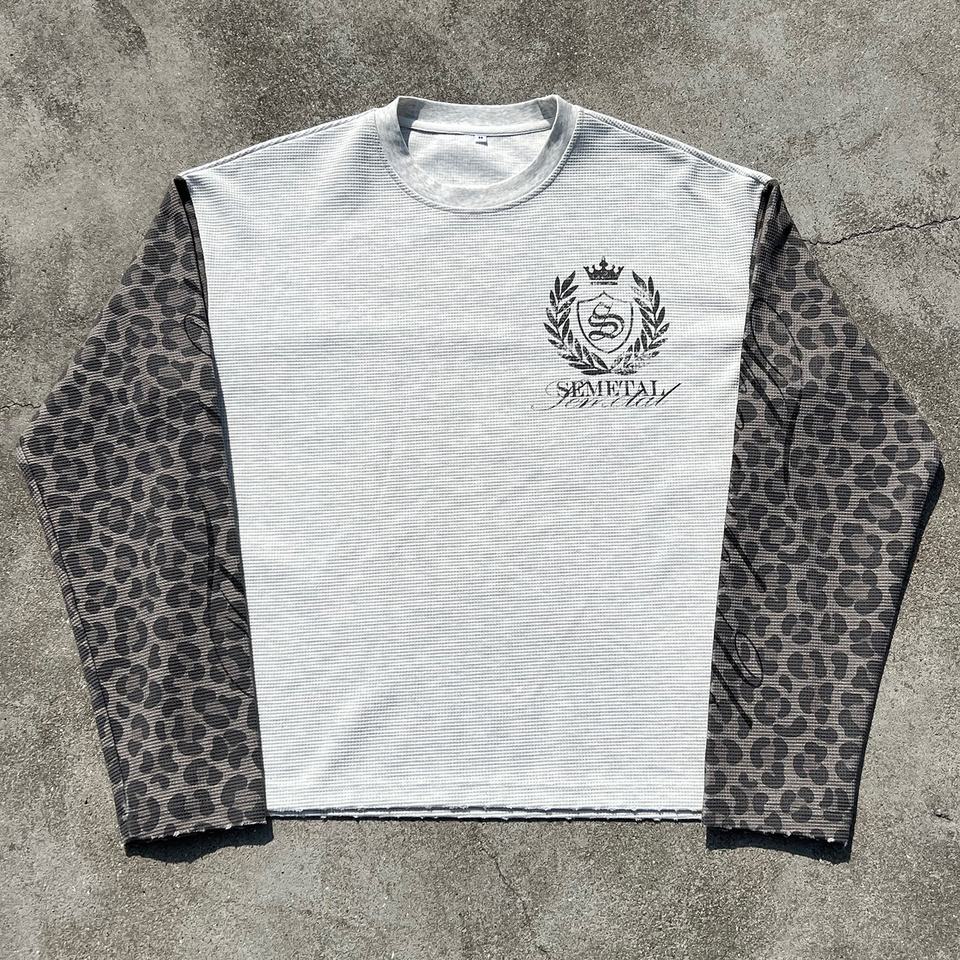 เสื้อยืดคอกลมทรงหลวมคุณภาพสูง ผ้าฝ้ายวาฟเฟิล 100% ลายเสือดาววินเทจ แขนยาวทรงโอเวอร์ไซส์ เสื้อยืดกันหนาว