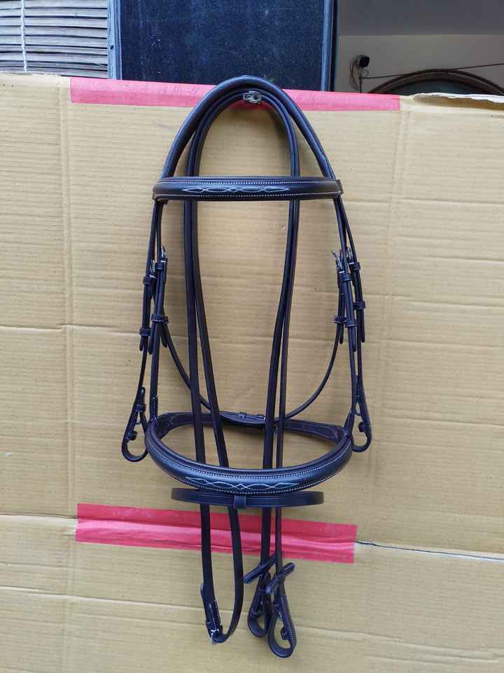 บังเหียนม้าแบบอังกฤษหนังขี่ม้าหนังสัตว์แบบเย็บติดสวยงามทนทาน