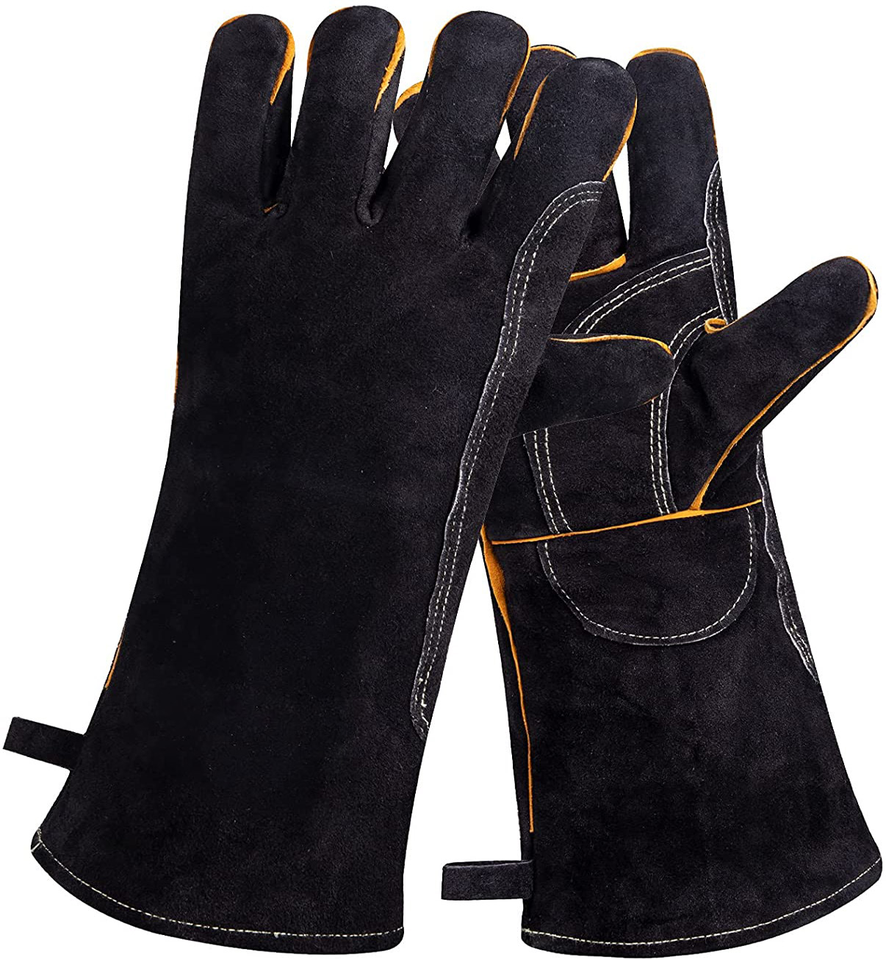 ถุงมือเชื่อมหนังวัวทนทาน EN420ใช้งานหนักป้องกันแรงกระแทกทนความร้อนสำหรับงานอุตสาหกรรม