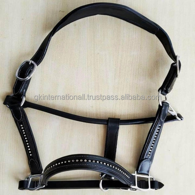 High Quality Durable Leather Horse Halter With Soft Leather Padded Noseband and Neck with Diamond crystals bling fancy halter