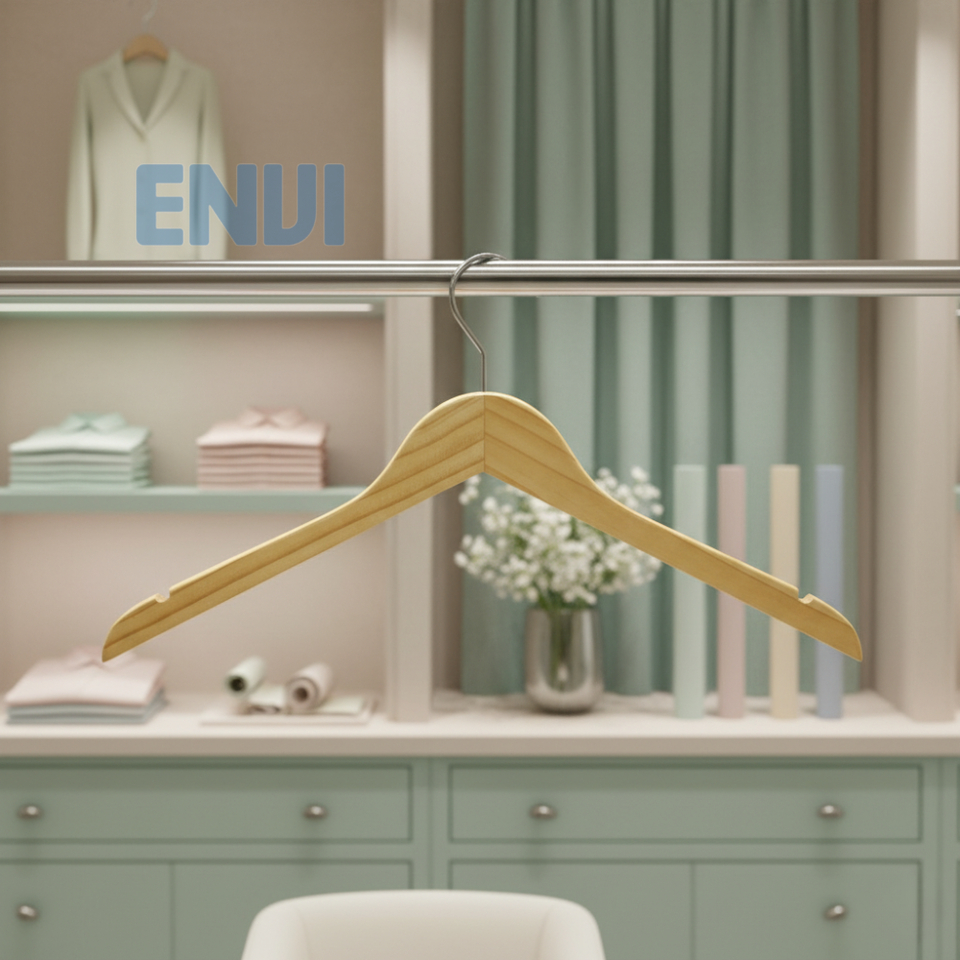 ไม้แขวนเสื้อไม้สนคุณภาพสูง ทนทาน พร้อมตะขอโครเมียมทันสมัย แบบชั้นเดียว สำหรับตู้เสื้อผ้าและห้องน้ำ