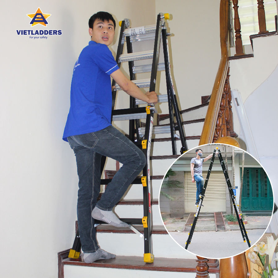บันไดพับอเนกประสงค์รูปตัวไอ อลูมิเนียมมาตรฐาน EN131 คุณภาพสูง โครงสร้างแบบผสมผสาน สำหรับอุตสาหกรรม บ้าน และคลังสินค้า