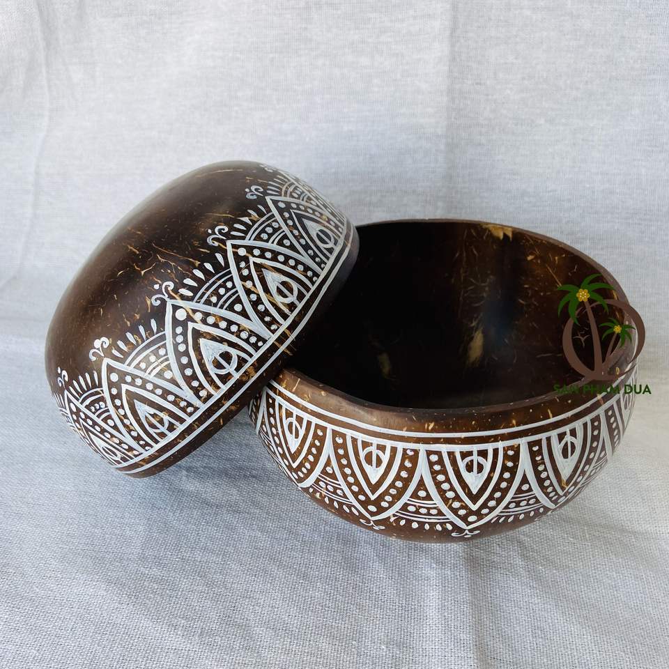 ชามกะลามะพร้าวขัดเงาเครื่องครัวเคลือบเงาเป็นมิตรต่อสิ่งแวดล้อมและเป็นมิตรต่อสิ่งแวดล้อมของตกแต่งบ้านขายส่งจากเวียดนามสำหรับการตั้งแคมป์