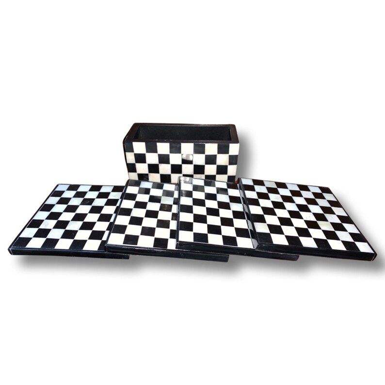 แผ่นรองแก้วคุณภาพสูง เป็นมิตรกับสิ่งแวดล้อม ปรับแต่งได้ ทำจาก MDF และงานฝังกระดูก ดีไซน์สี่เหลี่ยมคลาสสิก สำหรับใช้ในบ้าน โรงแรม สำนักงาน โต๊ะอาหาร HF CRAFTS