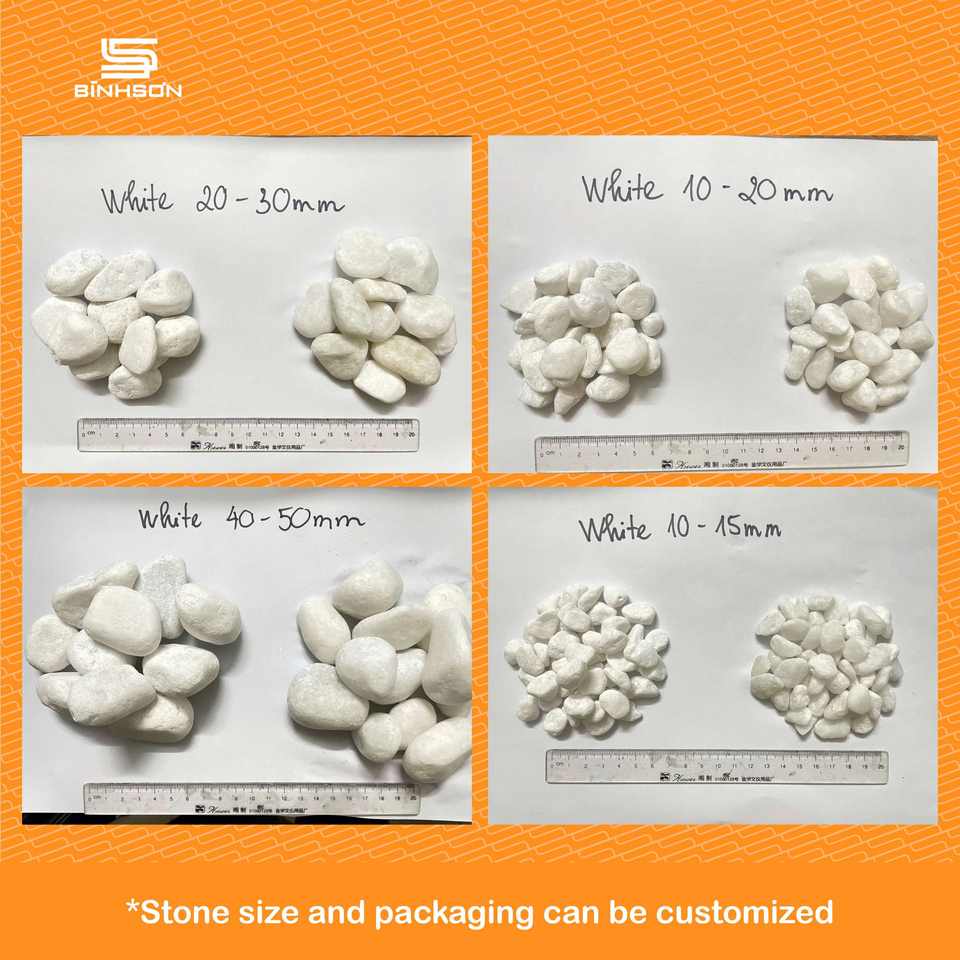 กรวดขัดเงาคุณภาพสูง เป็นมิตรกับสิ่งแวดล้อม ทนทาน สีขาวเหมือนหิมะ สำหรับตกแต่งภูมิทัศน์ ราคาดีที่สุด สำหรับงานภายนอก