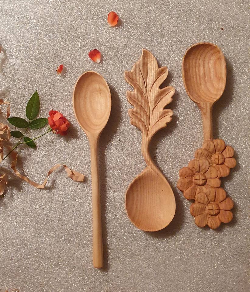 ช้อนไม้แกะสลักมือเป็นมิตรต่อสิ่งแวดล้อมช้อนไม้ทำมือ
