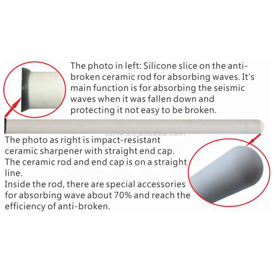 เหล็กลับมีดเซรามิกสีขาวคุณภาพสูง เป็นมิตรกับสิ่งแวดล้อม ด้ามจับไม้บีช เส้นผ่านศูนย์กลาง 16 มม. ความยาว 273 มม. ความละเอียดละเอียด