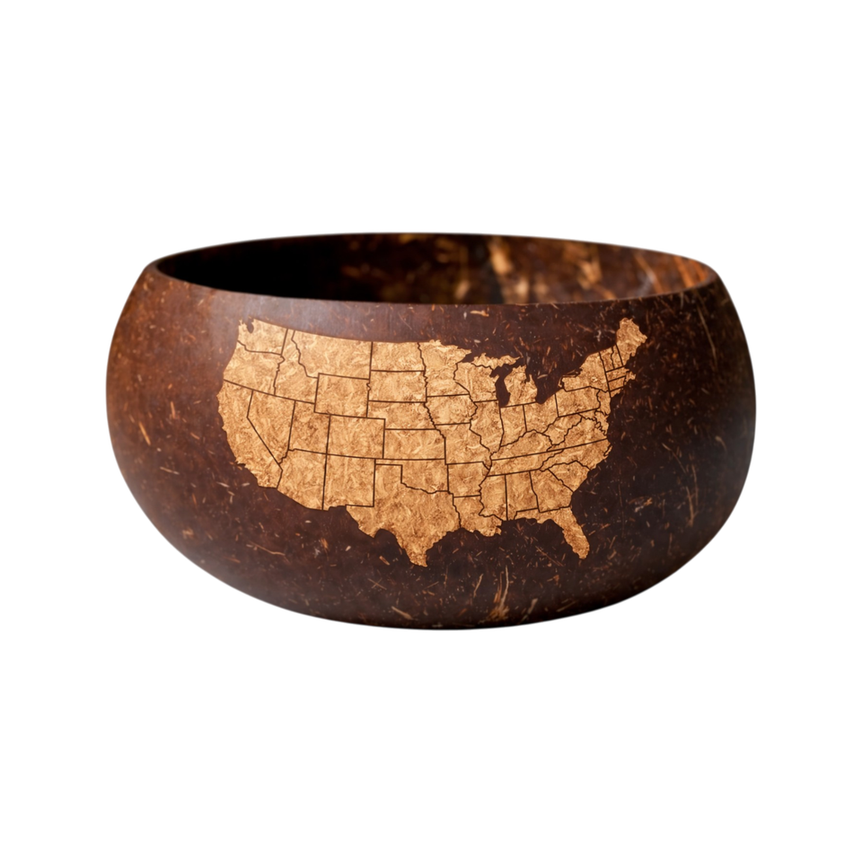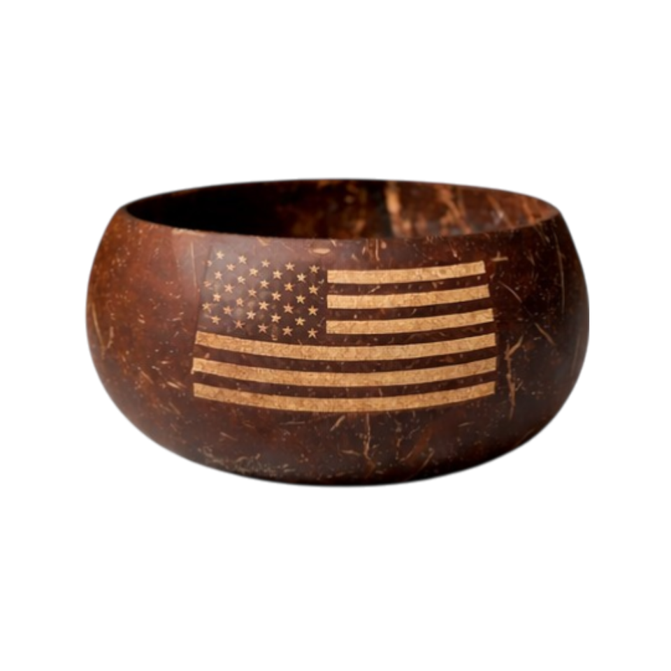 Coconut Shell Bowl Engrave Art Decor for 4th July Independence Day